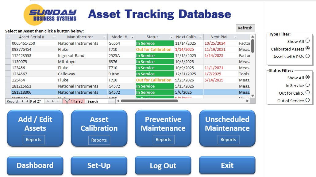 The SBS Asset Tracking Database is our premier product for managing monitoring and measuring equipment (assets):